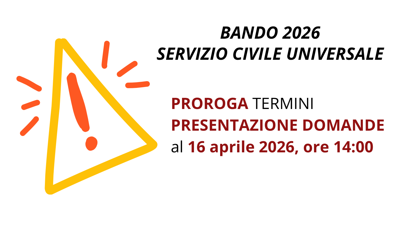 E’ prorogato al 16 aprile 2026, ore 14:00, il termine di presentazione delle domande di Servizio Civile Universale. Per maggiori informazioni sulle